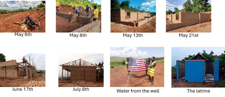 Today the walls are ready and the roof is nearly done, plus a well and a latrine. There is still work to complete the roof and finish the interior floors and walls. We hope to have the school ready for students by January 2025.